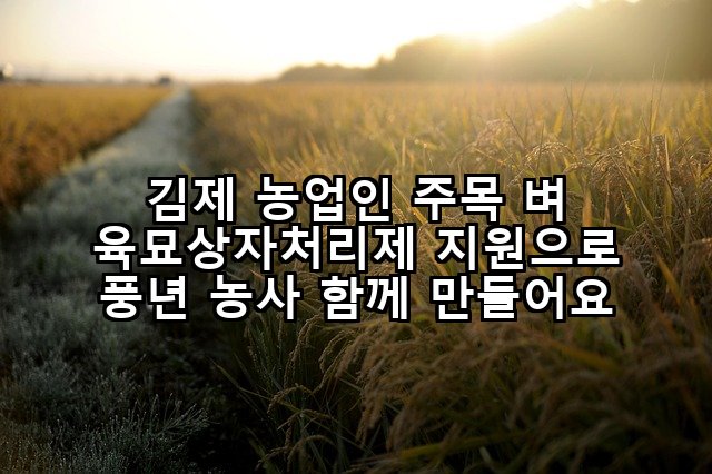 김제 농업인을 위한 희소식: 벼 육묘상자처리제 지원으로 성공적인 영농 준비! 김제시는 한반도 최대의 곡창지대로 알려져 있습니다. 드넓은 김제평야에서 땀 흘려 농사를 짓는 농업인들에게는 매년 새로운 희망과 더불어 다양한 도전 과제가 주어지곤 합니다. 특히 안정적인 벼 생산은 농가 소득과 직결되며, 이를 위해서는 초기 육묘 단계부터 철저한 관리가 필수적입니다. 이러한 중요성을 깊이 인식하고, 김제시가 농업인들의 영농 부담을 … 더 읽기